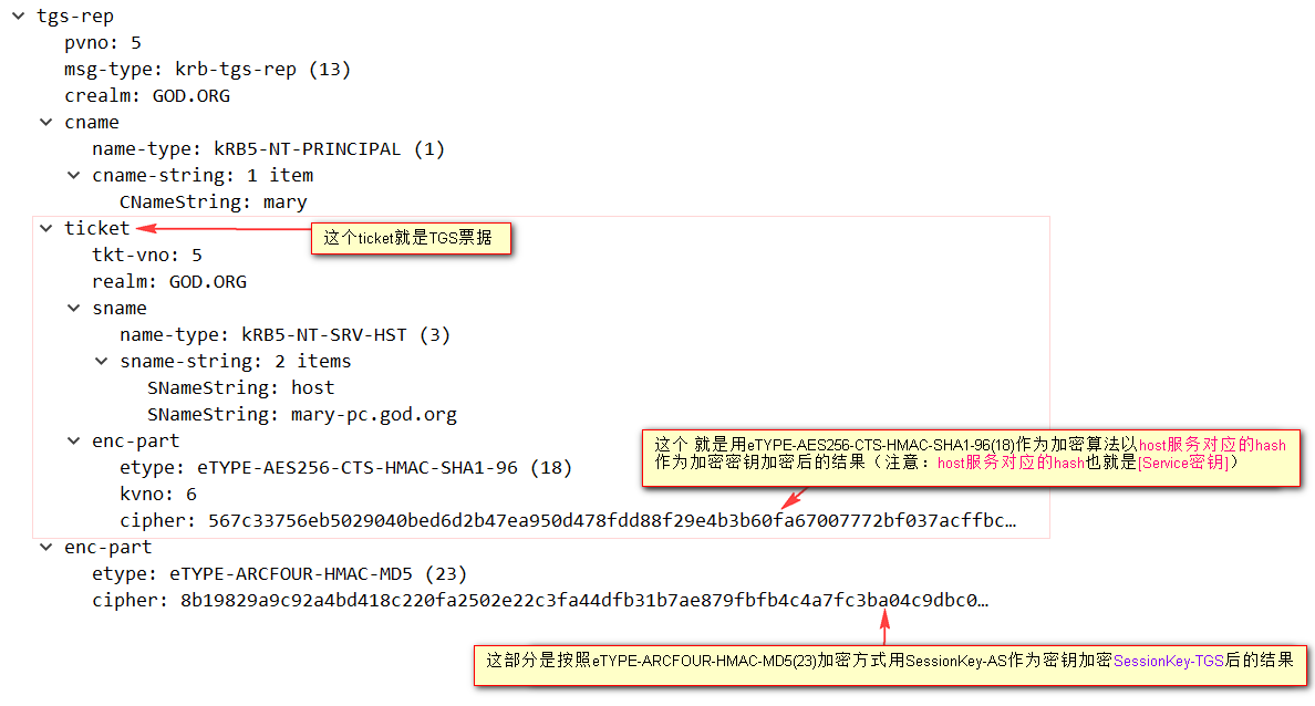 认证成功后,TGS 会生成一个 [SessionKey_TGS] ,并响应 Client 如下信息: